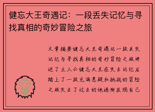 《贵州卫视天天健康》节目自播出以来,始终致力于为广大观众提供全面的健康知识和实用的养生技巧。节目不仅关注身体健康,还关注心理健康,探索着适合当代人生活方式的创新方式。通过专业的专家团队、精准的健康数据分析以及生活化的健康话题,节目为观众传递着“全民健康”的理念,帮助大家通过正确的生活习惯与科学的养生方法,改善身体状况,提升生活质量。本篇文章将从四个方面对《贵州卫视天天健康》进行详细的分析与探讨,分...